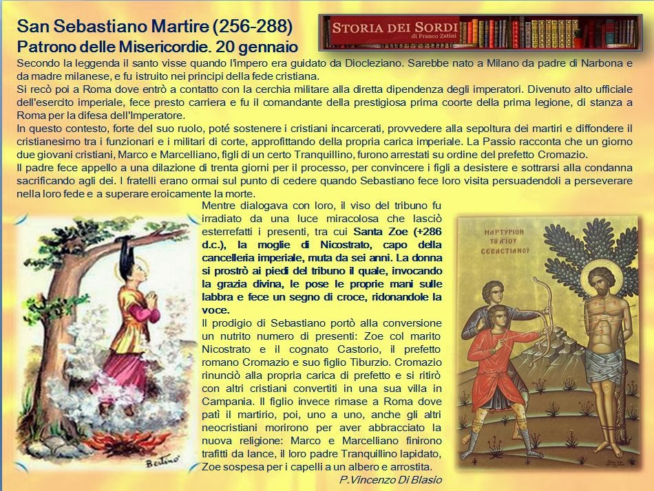 Zoe, moglie di Nicostrato, capo della cancelleria imperiale, era muta da sei anni. La donna si prostrò ai piedi del tribuno Sebastiano, il quale invocando la grazia divina le pose le proprie mani sulle labbra e fece un segno di croce, ridonandole la voce.