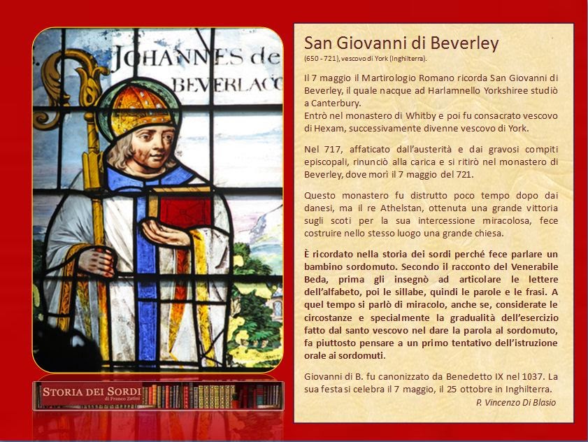 Giovanni di Beverley e la storia dell’educazione dei sordi. San Giovanni di Beverley (650 – 721), vescovo di York (Inghilterra).