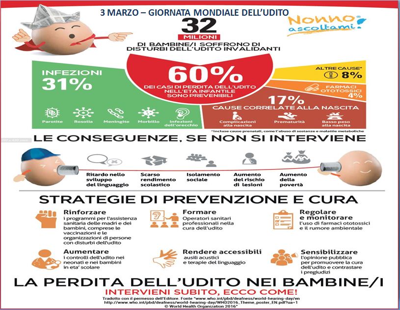 Ogni anno, il 3 Marzo viene organizzata la giornata mondiale dell’udito, per invitare tutti i cittadini a riflettere sull’importanza della prevenzione e di garantire il benessere uditivo, ed è rivolto a tutte le fasce di età.